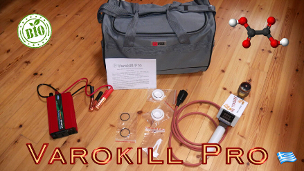 | Η σωστή επαγγελματική λύση... οικονομικα και γρήγορα ! Ηλεκτρική συσκευή, η οποία μετατρέπει το δι’ ένυδρο Οξαλικό Οξύ, (C2H2O4*2H20) από στερεό απ’ ευθείας σε αέριο (εξάχνωση), χωρίς να περάσει από ενδιάμεση υγρή φάση. Καταπολεμά την βαρρόα, γρήγορα, οικονομικά και βιολογικά. Συνδέοντας την συσκευή σε εναλλασσόμενη τάση 220 V (μπαταρία αυτοκινήτου με inverter, γεννήτρια, παροχή), διοχετεύουμε εξαχνωμένο Οξαλικό Οξύ (αέρια μορφή), εισάγοντας το ακροφύσιο της συσκευής στην κυψέλη. Χρόνος εφαρμογής 20 sec ανά κυψέλη. Το Varokill Pro ελέγχει και αποτρέπει την υπερβολική θέρμανση του οξαλικού οξέος ΟΑ, μέσω ειδικού μικροεπεξεργαστή ώστε να μην αποσυντίθεται το ΟΑ σε μυρμηκικό οξύ και μονοξείδιο του άνθρακα, επιτυγχάνοντας μέγιστο βαθμό επανακρυστάλλωσης, γεγονός που το καθιστά αποτελεσματικότερο (ανάπτυξη θερμοκρασιών χωρίς έλεγχο θερμοκρασίας κ.ο.κ.). • Βιολογική θεραπεία. • Γρήγορη εφαρμογή θεραπείας 20 sec η κυψέλη. • Δεν χρειάζεται να ανοίγετε την κυψέλη. • Αποτελεσματικότητα άνω του 96% ( χωρίς γόνο, με γόνο επαναληπτικά 3 φορές ανά 5 μέρες) • Δεν βλάπτει τις μέλισσες, την βασίλισσα, το γόνο. • Δεν παρουσιάζει αντίσταση στην θεραπεία η βαρρόα. • Δεν επηρεάζει την πτητική δραστηριότητα των μελισσών. • Δεν καθυστερεί την ανάπτυξη των μελισσιών την άνοιξη. • Δεν μολύνει τα πλαίσια με φάρμακα δηλητήρια. • Αποτελεί και μέθοδο καταμέτρησης του επιπέδου της βαρρόα. • Κόστος θεραπείας ανά κυψέλη περίπου 5 λεπτά του ευρώ. | |